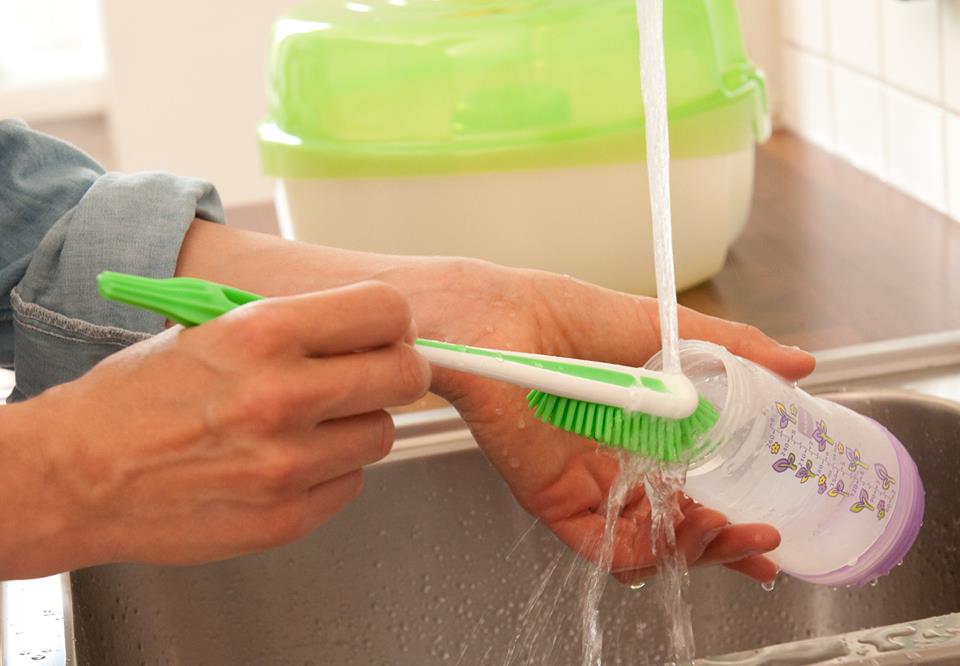 - Esterilização: Após o uso, os bicos e mamadeiras devem ser limpos com detergente neutro e água corrente e com escovas próprias para higienização de mamadeiras.